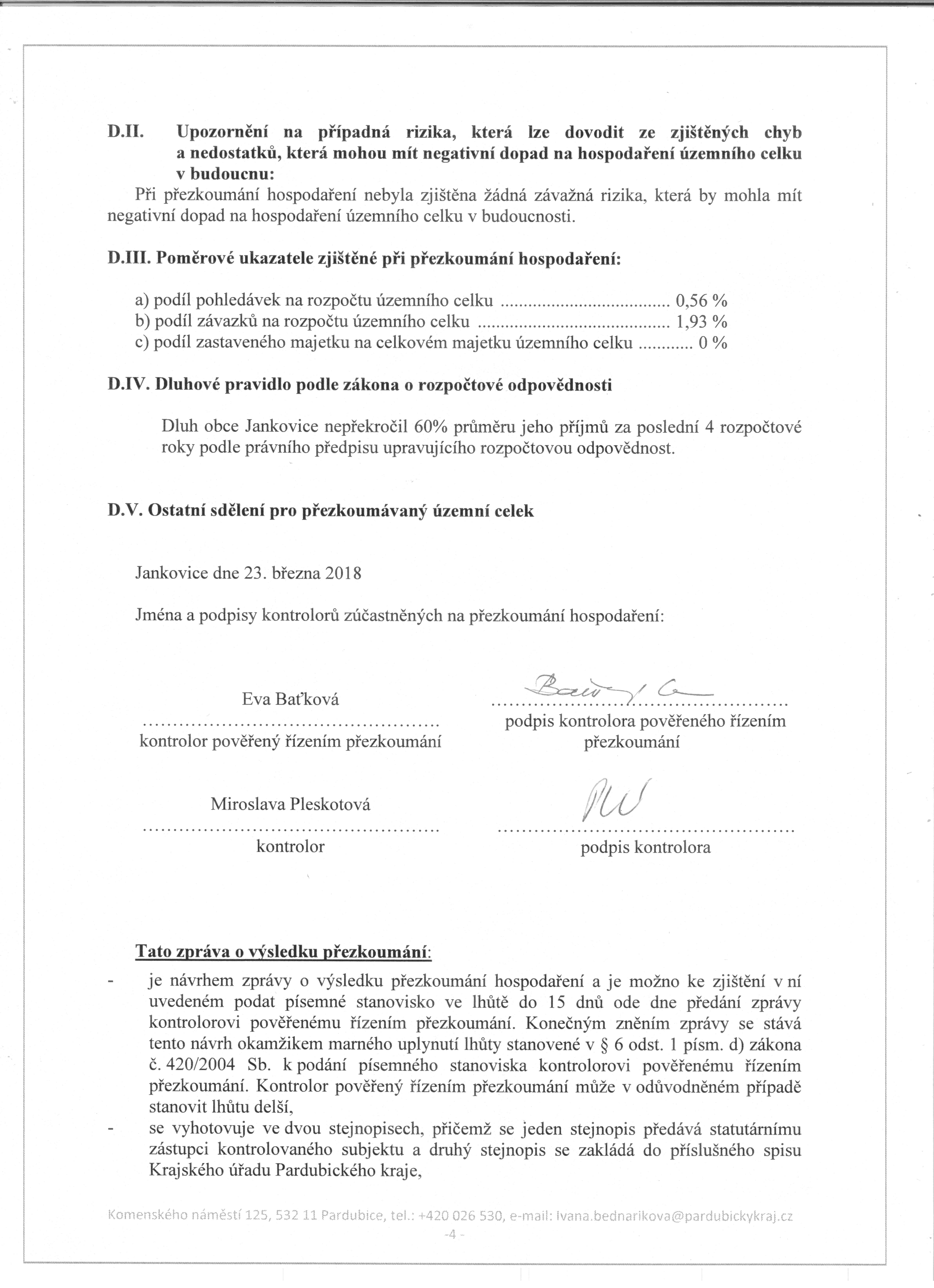 Ve dnech 6. 10. 2017 a 23. 3. 2018 proběhla kontrola hospodaření za rok 2017, kterou provedl Krajský úřad Pardubického kraje. Náš úřad prošel touto kontrolou bez závad a nedostatků.